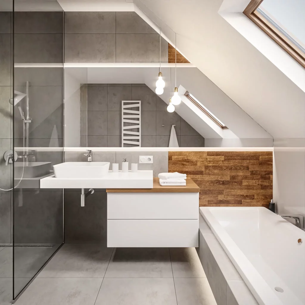 Prezentuje się to niezwykle atrakcyjnie i ozdobnie. Światło subtelnie rozchodzi się i wygląda jak cieniowane. Przy lustrze jest intensywniejsze, im dalej tym staje się bledsze. Niczym świetlna oprawa lustra. Światło wybija je do przodu, a całość nabiera głębi i wyrazistości z efektem trójwymiarowości. Niezależnie od tła – ściana, tapeta, panele, drewno, płytki, gres czy beton – na każdym z nich robi to ogromne wrażenie.